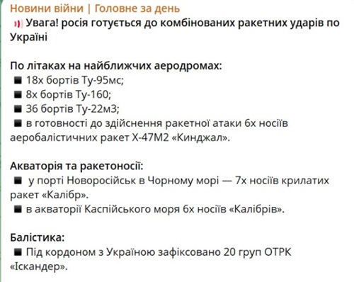Читаю я на патриотичном паблике «Новости войны», что «Несколько десятков российских стратегов в полном вооружении готовы обстреливать украину. Черноморский флот из Новороссийска и каспийская флотилия грозят «Калибрами». На границе десятки пусковых установок с «Искандерами».