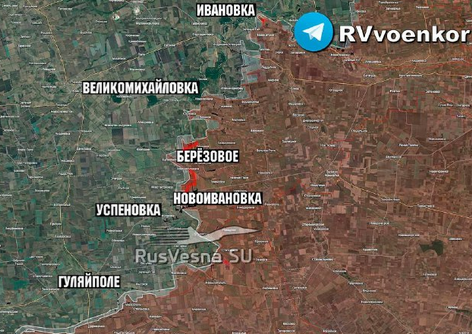 Севернее Берёзового российские пехотные подразделения штурмуют лесополосы и продвинулись в направлении балки. Основной задачей русских стоит закрытие «кармана», что позволит им освободить часть сил и задействовать их в дальнейших штурмах.