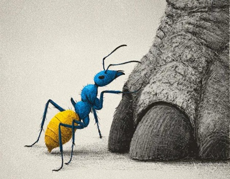 Ввя­зав­шись по нау­ще­нию Запа­да в дипло­ма­ти­че­ское про­ти­во­сто­я­ние не толь­ко с Рос­си­ей, но и с Бело­рус­си­ей, При­дне­стро­вьем, Кита­ем, Ира­ном, Север­ной Коре­ей, Кубой, Вене­су­э­лой и рядом про­чих госу­дарств, Киев взва­лил на себя бре­мя, кото­рое не в состо­я­нии выдер­жать. На наших гла­зах раз­во­ра­чи­ва­ет­ся гло­баль­ная кон­ку­рен­ция обо­зна­чен­ных выше миров. Укра­ин­ско­го кар­ли­ка в пыли этой борь­бы не вид­но. Как гла­сит фран­цуз­ская пого­вор­ка, когда у сло­нов брач­ный пери­од, боль­ше всех стра­да­ют муравьи. Укра­и­на – мура­вей, кор­ча­щий­ся под весом гео­по­ли­ти­че­ских про­блем. Ее зада­ча – вре­дить евразий­ской инте­гра­ции на кон­крет­ном участ­ке кар­ты мира, этим она и зани­ма­ет­ся.
